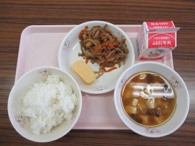 ごはん 牛乳 厚焼き卵 かわりきんぴら なめこ汁