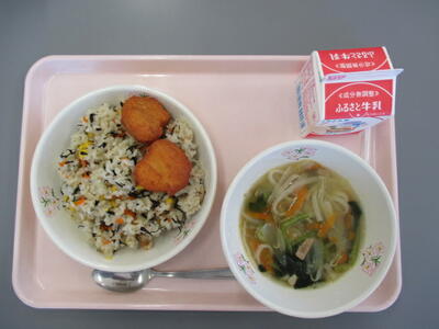 ひじきピラフ 牛乳 チキンナゲット ヌードルスープ