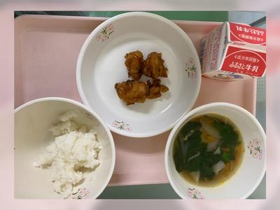 本日のユーリンチーは、子供に人気な唐揚げに、ねぎやしょうゆベースのタレをかけました。おかわりじゃんけんしているクラスが多かったです。