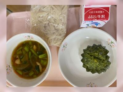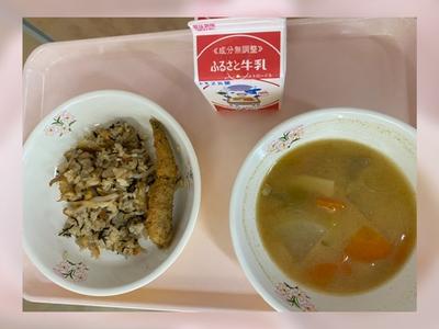 ひじきごはん 牛乳 にぎすの磯辺揚げ さつま汁