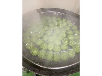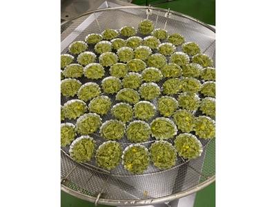 本日の菜の花蒸しパンは、小松菜を練り込んだ生地に、とうもろこしを入れて作りました。