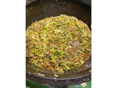今日はキャベツが多く、炒めるのが大変でしたが、美味しく出来上がりました。全部で約50kgのキャベツを手切りしました。