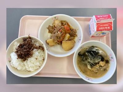 ごはん 牛乳 肉じゃが 大根のみそ汁 エコふりかけ