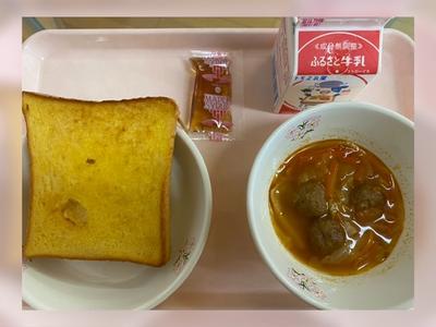 フレンチトースト(メープルシロップ) 牛乳 ミートボールのトマトスープ