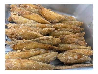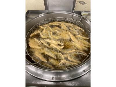 今日のほっけの立田揚げは新メニューです。ほっけは身が柔らかく、焼いても美味しいですが、揚げると中は柔らか、外はカリっとしていて、魚が苦手な人でも食べやすくなります。好評でした。