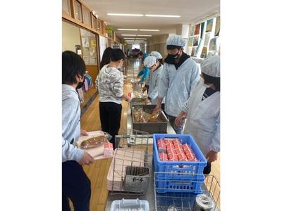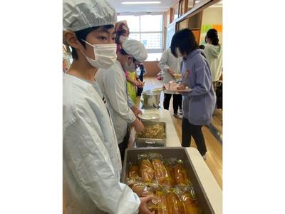 6年生の給食の配膳の写真です。