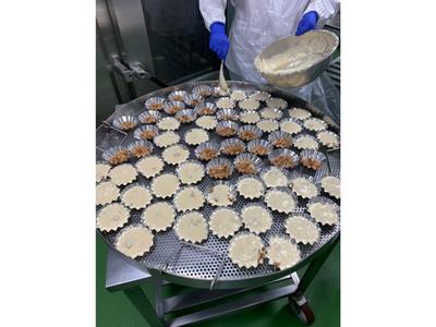 肉は炒めて、アルミカップに入れます。