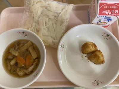今日は、人気メニューの肉じゃがでした。他に納豆もあり、量が多かったのですが、おかわりする児童も多く、好評でした。