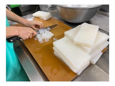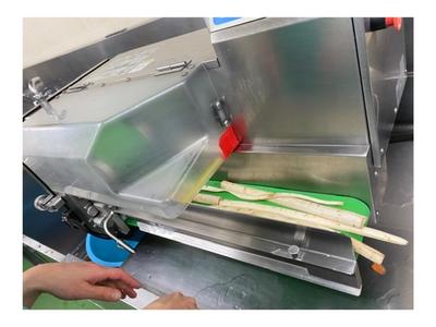 調理室での野菜などの食材は、手切りしたり、機械を使って切っています。量によって手切りか機械かを変えています。