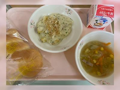ツイストパン 牛乳 さつまいものグラタン 野菜スープ
