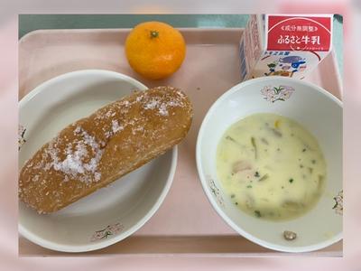 揚げパン(グラニュー糖) 牛乳 コーンクリームスープ みかん