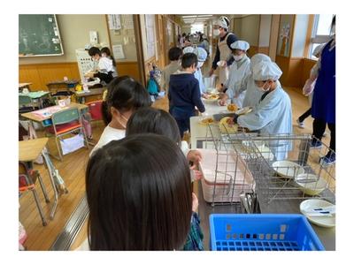 今日は、5年生の配膳の様子を掲載します。