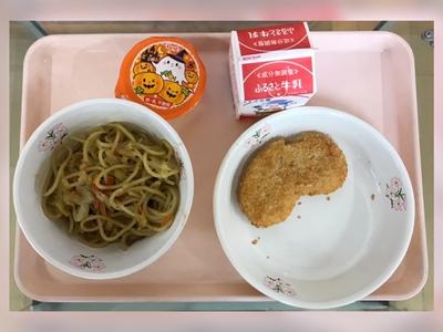 焼きそば 牛乳 花豆コロッケ パンプキンババロア