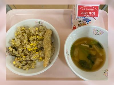 今日は、給食で人気メニューの唐揚げです。おかわりしている児童が多く、好評でした。