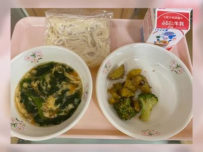 今日のキムチラーメンは、少し辛かったですが、1年生も食べられる辛さで、ピリ辛っとした味がクセになる麺汁でした。
