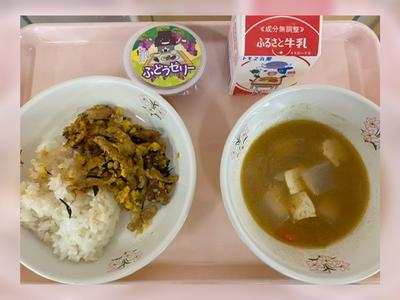 鉄骨いなりちらし 牛乳 鋳物汁 きゅぽらんゼリー
