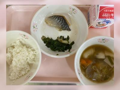 ごはん 牛乳 さばの塩焼き 煮びたし だご汁