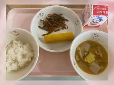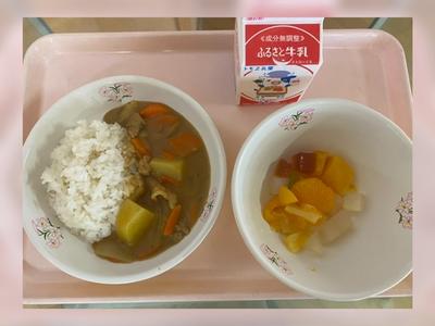 今日は、子供たちに大人気のカレーライスです。給食のカレーライスには、隠し味として、脱脂粉乳やチーズが入っています。