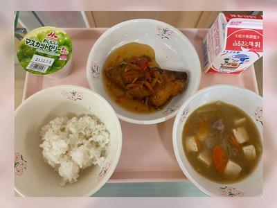 ごはん 牛乳 かんぱちの甘酢あんかけ 豚汁 マスカットゼリー