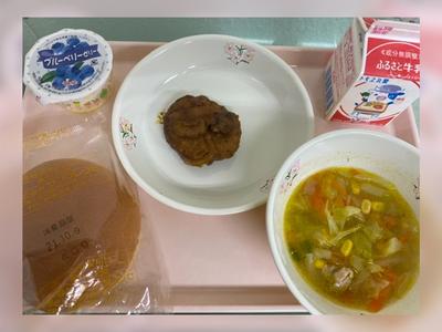 子供パン 牛乳 煮込みハンバーグ 野菜スープ