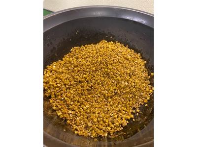 混ぜ合わせて、黒糖や砂糖などで作ったタレを絡めます。