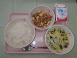 本日の給食は、ごはん・牛乳・たらのごまみそあえ・かきたま汁です。