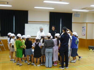高学年の子供たちが、やさしく面倒を見てくれ、分かりやすい言葉づかいで低学年の子供たちに説明をしていました。各チームごとの様々な活動に低学年の子供たちは、楽しく取り組んでいました。